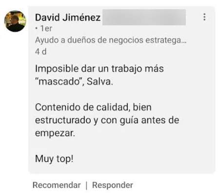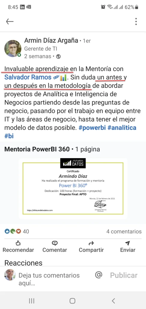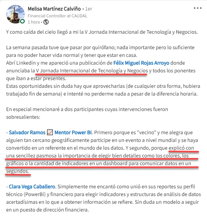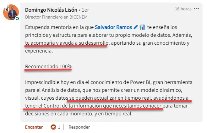 Para mí, ha sido un cambio radical, absoluto. Ahora en 1 hora como mucho, tengo analizado el reporte de mensual de un cliente, con muchas más métricas que antes y grandes mejoras visuales. El análisis de la situación es mucho más rápido y me ha supuesto una mejora en la eficiencia brutal.”