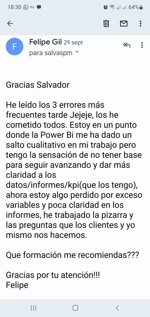 “Antes, preparar los informes de control financiero y de gestión de cada uno de mis clientes me llevaba unas 8 horas cada mes. Era un infierno, todos los meses teníamos que actualizar el Excel, pedíamos los datos a la empresa, volcábamos, cuadrábamos, montábamos el reporte, hacíamos ajustes en las fórmulas… total, que cuando llegaba el momento del análisis, ya le había cogido tanto atedio al montaje del reporte que al análisis de dedicaba menos tiempo que a montar el reporte.